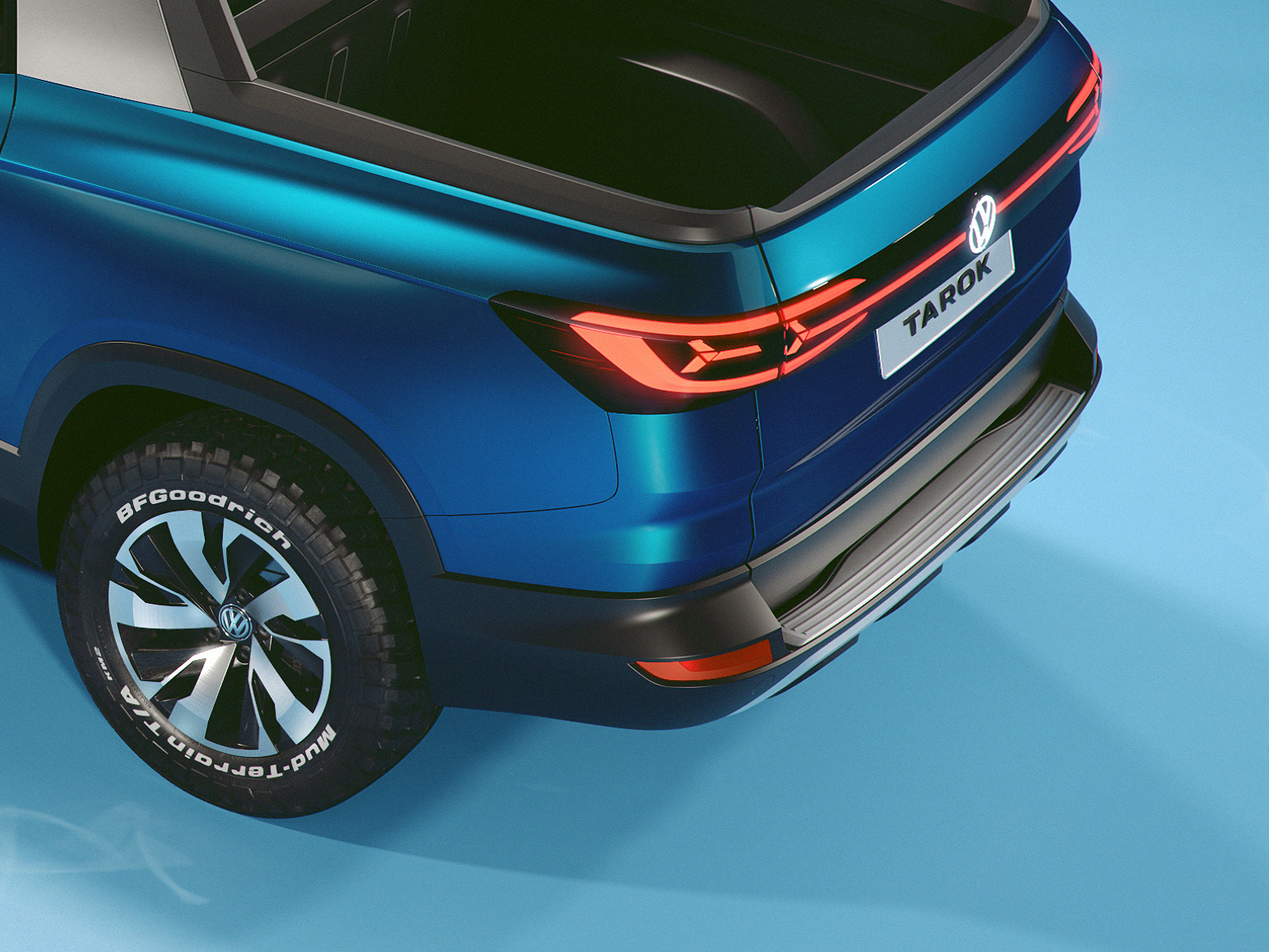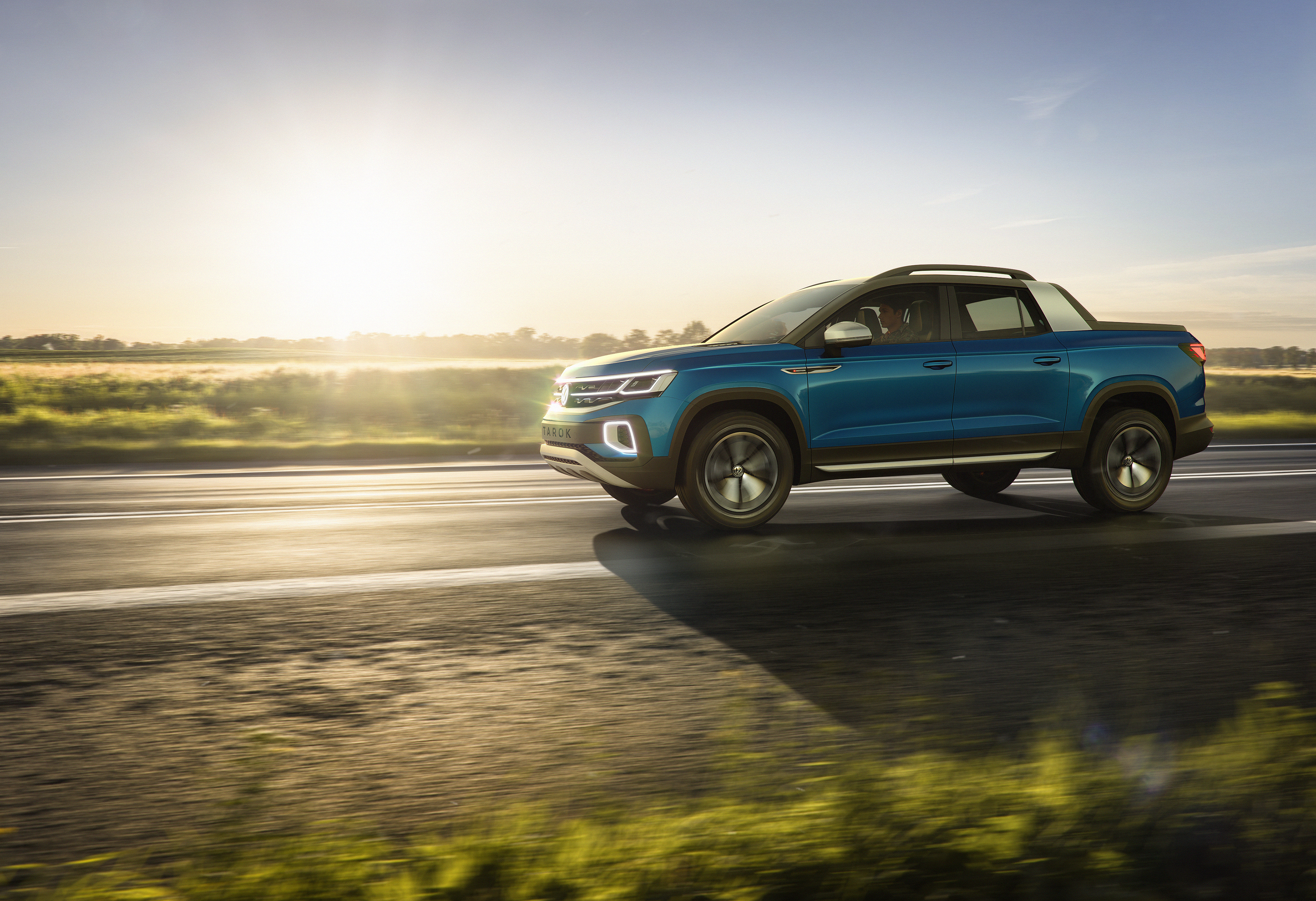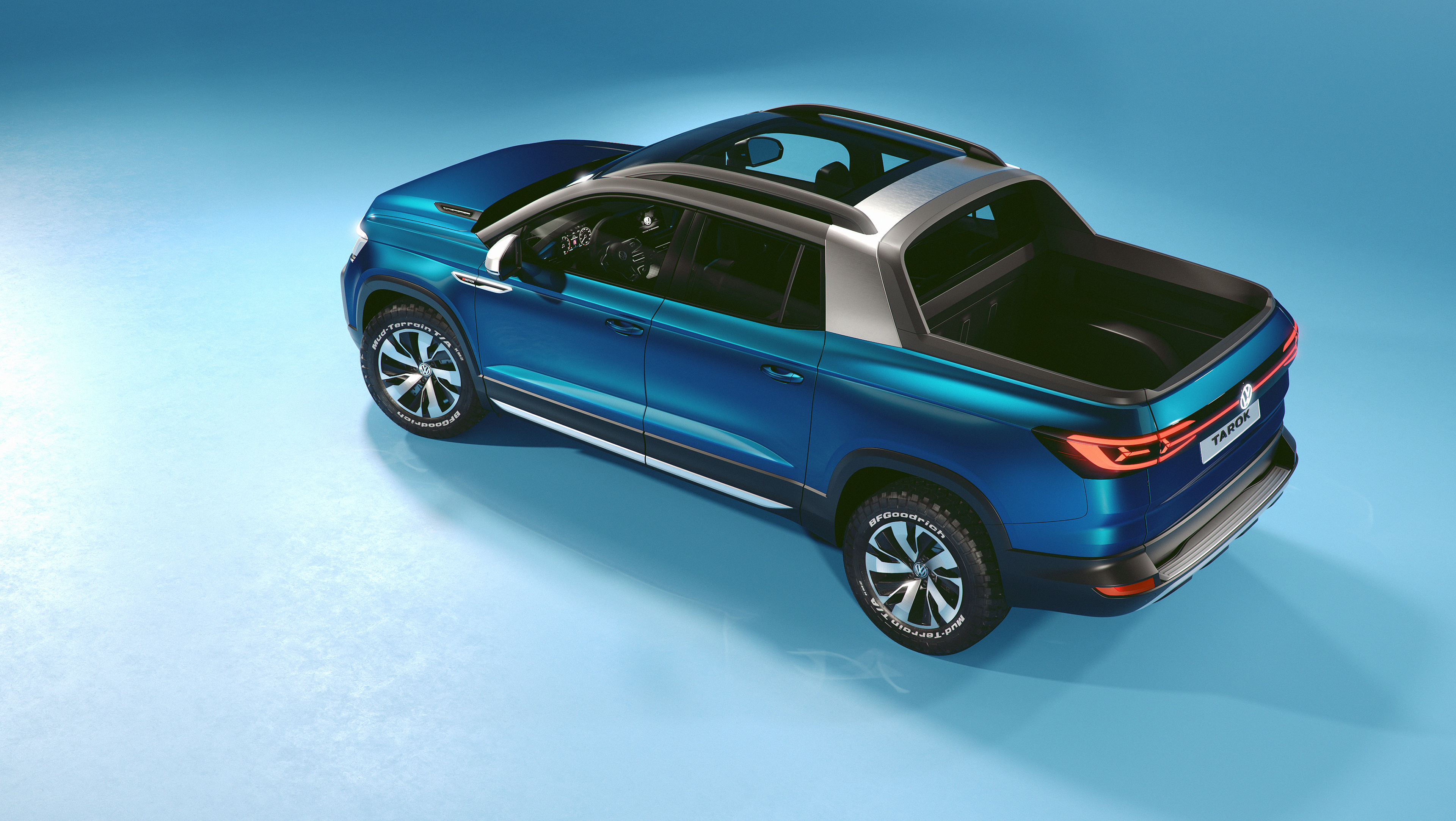 Volkswagen has succeeded in merging the practical advantages of the VW Tarok Concept with a lifestyle-oriented design. Klaus Bischoff, Head Designer at the Volkswagen brand, explains: "With its striking Targa-inspired roof bar, charismatic front end, three-dimensional LED lighting strip in the rear, and powerful yet stylish side panels, the Tarok Concept's expressive design makes it the first pick-up to combine the stylistic elements of an urban SUV with an authentic off-road design." Bischoff continues: "The Tarok's DNA adds an exhilarating dynamic to the segment."